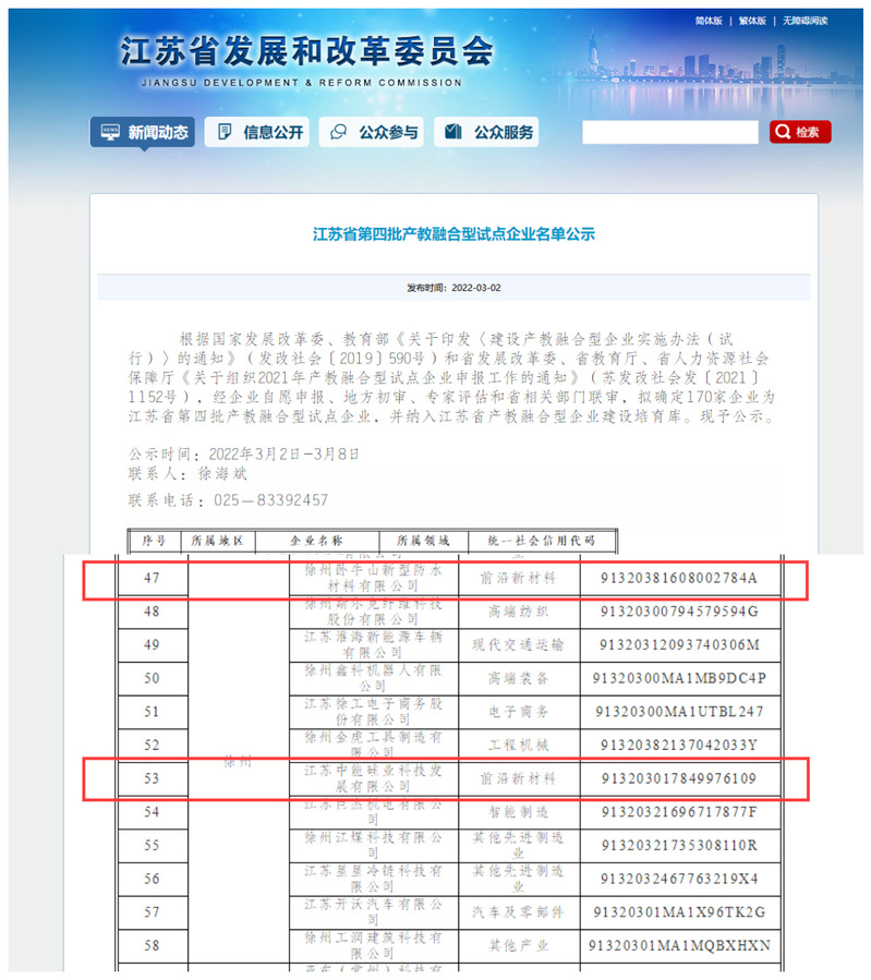 近日,从江苏省发展和改革委员会获悉,与建筑工程学院、化学工程学院联合申报的徐州卧牛山新型防水材料有限公司、江苏中能硅业科技发展有限公司,被确定为江苏省第四批产教融合型试点企业,并纳入江苏省产教融合型企业建设培育库,成为江苏省校企合作新的典范。至此,学校理事会共有四家成员单位获批此项荣誉。
