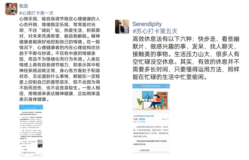多姿活动“解心忧”。学院借助新媒体公众号,进行疫情防控期间心理科普和自助知识的宣传;学院开展“关注心理,传递知识”苏心APP七日打卡活动,同学们在苏心APP上学习心理知识,并将心得感悟在QQ空间或者朋友圈分享打卡;开展“心理电影沙龙”活动,为同学们播放《心理捕手》等经典心理电影,让同学们在娱乐的同时了解更多心理健康知识;开展“记录生活,发现美好”校园Vlog比赛活动,引导同学们发现并捕捉校园中的美好瞬间,短视频《抗疫加油》手势舞获得比赛一等奖。