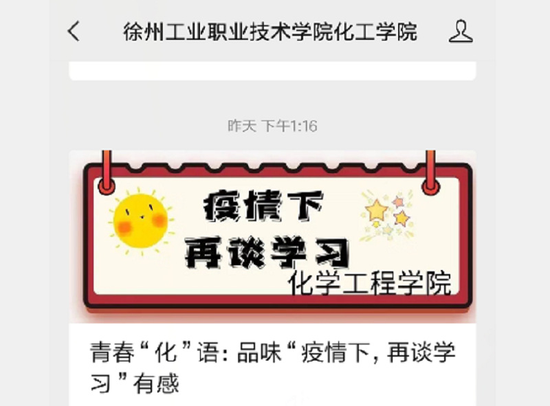 结合实际“悟”。在组织全体学生在班会课上认真学习了学校近期疫情防控政策及“疫情下,再谈学习”“‘青春才几年,疫情占三年?’请相信,‘春寒’之后万木春”等文章之后,学院积极引导学生把班会课所学内容与自己的学习、生活实际相结合,真正使班会内容入脑入心入生活。同时,化学工程学院在官微“青春‘化’语”栏目,推出了部分学生的感悟,通过新媒体进一步做好网络思想政治教育工作。