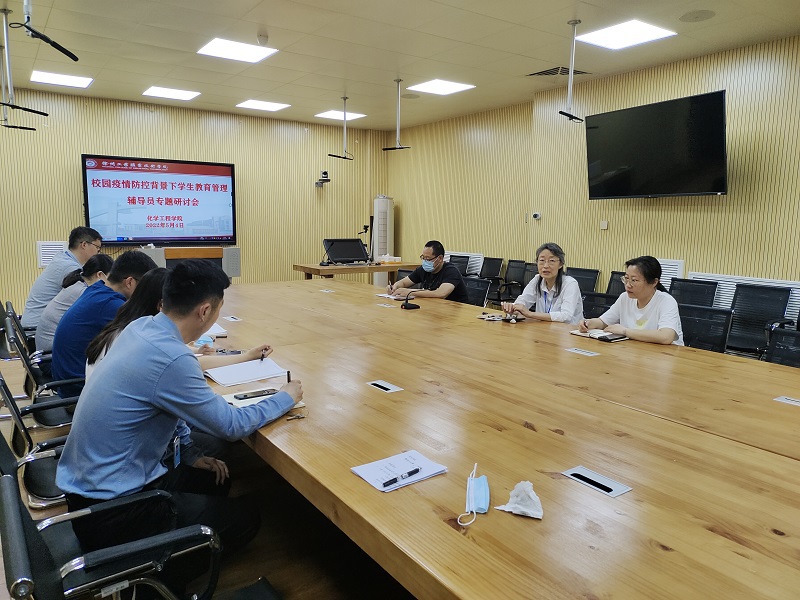 为落实立德树人根本任务,扎实做好校园疫情防控背景下学生教育管理工作,进一步筑牢校园疫情防线,提升学院辅导员专业素质,服务学生健康成长,提高育人质量和实效,5月4日下午,化学工程学院在B08-219会议室召开校园疫情防控背景下学生教育管理辅导员专题研讨会,学院党总支书记吴红,院长张雷出席研讨会,全体辅导员参加会议,研讨会由学院党总支副书记郝红艳主持。