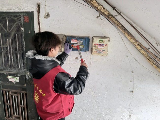 针对社区墙面、楼道扶手、公共宣传栏等区域层层粘贴的“小广告”,志愿者们毫不松懈、耐心细致。他们弯腰俯身,用铲子小心翼翼铲除张贴物,对残留的顽固胶痕,用抹布蘸取除胶剂反复擦拭、精准清理,做到不放过一处角落、不留下一丝残迹。汗水渐渐浸湿了志愿马甲,却丝毫未减大家的服务热情,经过不懈努力,原本布满“小广告”的区域逐步恢复整洁有序。