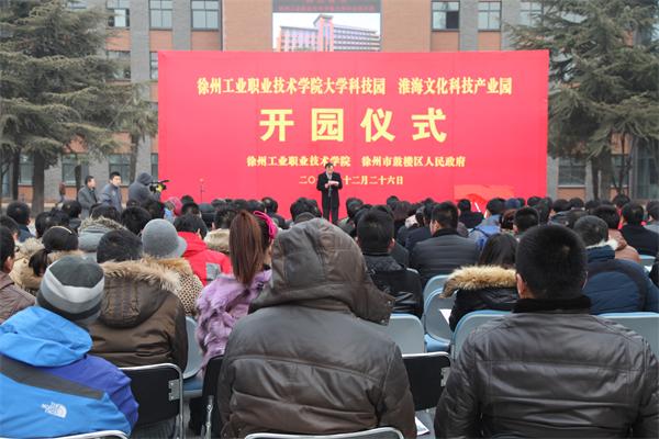 12月26日上午,我校与鼓楼区政府联合举行徐州工业职业技术学院大学科技园暨淮海文化科技产业园开园仪式。徐州市委常委、宣传部部长冯其谱,徐州市人民政府副市长李燕,鼓楼区区委书记王维峰,区委常委宣传部长孙云静、副区长张英见、吴喜平,市委宣传部、市发改委、科技局、教育局、商务局、人保局、文广新局及鼓楼区相关职能部门负责人出席仪式;我校校长祝木伟,副校长魏勇,科技园管委会、董事会、监事会成员,中国矿业大学科技园、南京工业大学科技园、江苏师范大学科技园、徐州工程学院产业处、南京工业职业技术学院科技园、江苏建筑职业技术学院资产经营公司以及入园企业代表等参加了开园仪式;魏勇主持仪式。