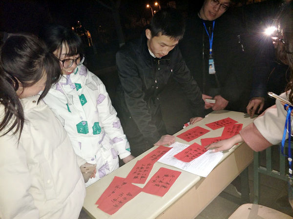 在元宵佳节即将来临之际,为丰富广大学生的文化娱乐活动,营造和谐、喜庆的节日气氛。3月1日晚上,化工学院以“张灯结彩闹元宵,猜谜游戏庆佳节”为主题在化工楼下开展了喜迎元宵节活动。