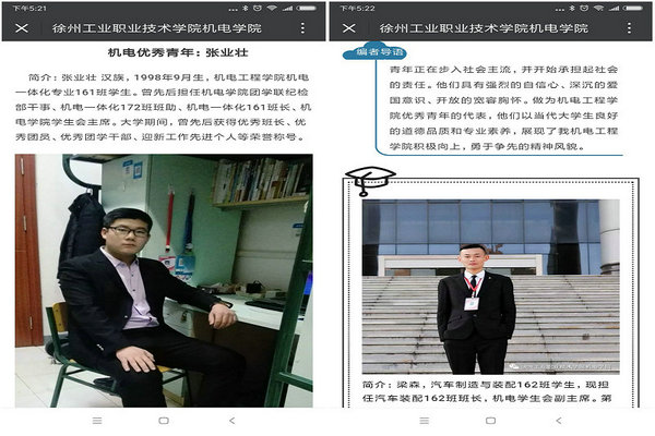 为深入学习宣传贯彻党的十九大精神,以习近平新时代中国特色社会主义思想为指引,进一步加强对全院广大青年的理论武装和思想引导,根据徐工职院团发〔2018〕10号《关于开展“青年大学习”行动的通知》的要求,机电工程学院以五四表彰为契机,选树标杆,以“我们身边的好青年”为主题,广泛开展青年典型故事分享活动,引导广大青年见贤思齐,砥砺前行,谱写美好人生篇章。