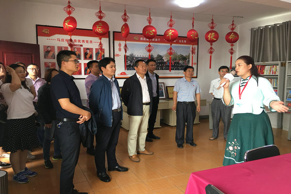 在马庄村工作人员的带领下,党员们按照习近平总书记参观路线,先后参观了马庄村村史馆、支部党员活动室、香包制作室、综合服务室和马庄村文化礼堂等,了解了马庄村的历史沿革、党建工作、民俗文化、对外交流和生态治理等情况,实地感受“马庄精神”。