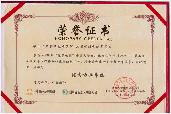 本次竞赛由全国大学生环保知识竞赛组委会等单位主办,全国1000余家高校团委、团总支、社团等单位协办。工商管理学院高度重视本次比赛,第一时间通过团总支、各班级向全体学生广泛宣传发动。为激励广大同学积极参与,确保参赛效果,学院积极组织学生开展线上线下学习,最终获得全国二等奖1名,三等奖8名;3名同学获得“优秀组织者”称号,5名同学获得“优秀志愿者”称号,曹远森老师荣获"全国优秀指导老师”称号,工商管理学院团总支被评为2018年第二届全国大学生环保知识竞赛“优秀协办单位”。