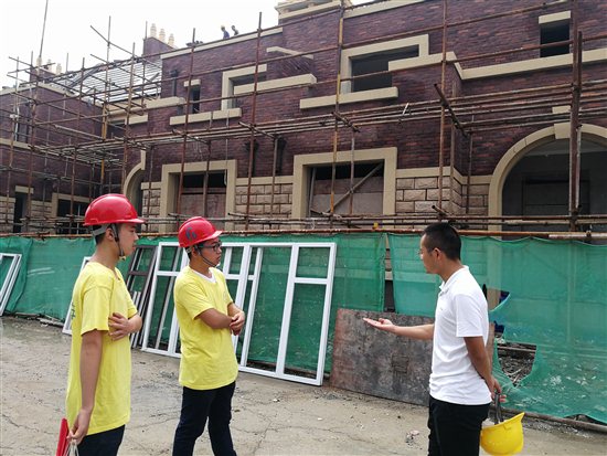 之后几天,实践团成员分组在天道公司项目经理李跃的陪同下,深入天道屋面施工的工地,进行深入的走访和调研。同学们根据预先的设计和安排,观摩工人施工,并与工人深入沟通交流,了解施工操作和技术处理等问题,以弥补课堂学习的不足,增强对实际操作的了解和把控;对项目经理进行访谈,了解具体的施工流程、安全保障、质量检测等问题,,并针对高职高专学生的特点,进一步了解了学生应具备的操作素质、技能认证和职业发展规划等方面的知识。
