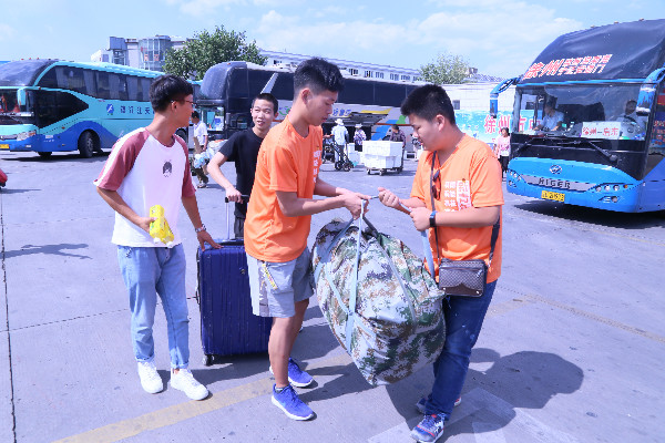 校团委书记张妍妍和校团委周树会、盖薇三位老师与80名迎新志愿者,奋战在高铁站、火车站、汽车总站和汽车南站等4个站点,第一时间与新生对接,引导新生及家长前往候车点,协助新生搬运行李、顺利乘车,确保新生及家长能够便捷地到校报到。为了让新生第一时间感受到学校的温暖,每辆迎新客车都安排了随车志愿者,除了负责宣讲徐州及我校的概况之外,也会对新生报到流程等问题进行详细介绍,并解答新生疑问,舒缓新生的紧张情绪,增强新生的归属感及对我校的了解。