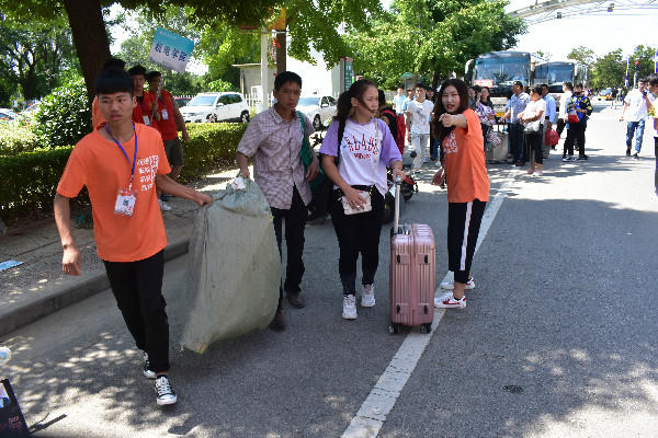 校团委副书记庞世华和40名迎新志愿者在学校东西门设置两个新生接待站和一个校学生会迎新服务岗,第一时间引导新生与二级学院的迎新站点对接,解答新生和新生家长的困惑,并组织家长有序乘车返程,顺利完成报到工作。与此同时,校团委协同校学生会制作了一批顺应当今网络流行、新生喜闻乐见的互动牌、横幅、喷绘以及团学组织宣传彩页,在校学生会迎新服务岗向新生展示和发放,让新生在报到过程中也能收获乐趣,增进对共青团的归属感。