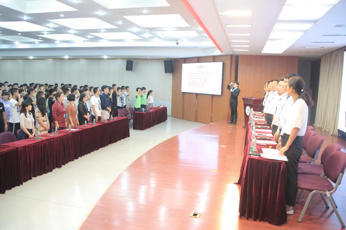 “欲知平直,则必准绳;欲知方圆,则必规矩”。勤学固然重要,但担当、责任、情怀更是不可或缺。今年的师生见面会特意加入宣誓环节,全体到场的2018级新生在“优秀新生高水平专业院长奖学金获得者”王世博的带领下一起郑重宣誓:恪守工院精神,维护工院荣誉,承担社会责任,弘扬工匠精神……,铿锵有力的誓言声久久回荡在校园上空,展现了2018级新生对徐工院新征程的承诺与期待。