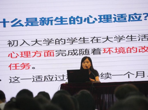 学院2018级同学中来自省外的同学比例高达66%,经过初步的了解,有很多同学在语言沟通、生活习惯、气候环境、离家焦虑等多种问题。针对这一现象,学院在图书馆报告厅组织开展了“大学生活,从心开始”的新生适应教育专题讲座,由2018级辅导员张荣老师主讲,全体省外的新生参加。张老师列举大学新生在学习、生活、人际交往中常见的不适应现象,通过案例仔细分析了为什么会出现不适应的问题以及如何缓解和解决这些问题。张老师以真实生动的案例,循循善诱,引导同学们学会确立目标,努力做到自知自立自强。