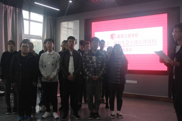 为了深入学习《学生会干部自律公约》,进一步加强学院学生干部队伍精神文明建设,更好地发挥学生干部在广大青年学生中的先锋模范作用。建筑工程学院于10月17日,在B01-210室召开了主题为“学生会干部自律公约”的学生干部座谈会。