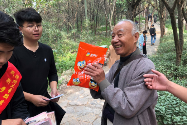 同学们热情的帮助老人上下山路,老人们也被同学们热切的笑容所感染,他们和学生谈论起自己年轻时的往事。其中一位老人认真叮嘱新一代的青年们“你们应当好好学习文化知识,趁着年轻,珍惜这场年华的赠予。”老人还在贺卡上写下了饱含了岁月痕迹的浑厚字句,以此来激励年轻人一代奋发向上。