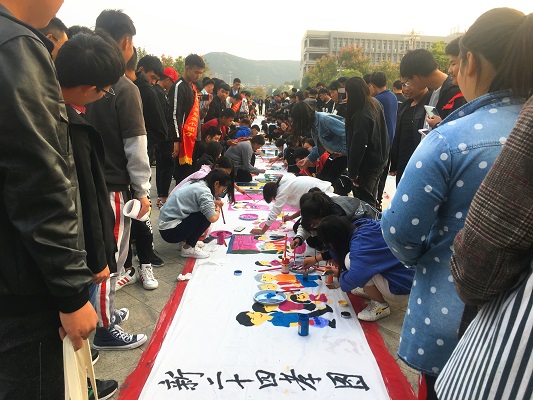 10月17日下午,在B18教学楼南广场,人潮涌动,热闹非凡,信电学院“一封家书叙浓情,二十四孝传美德”主题团日活动如期举行,同学们在40多米长的白色画布上手绘新“二十四孝”,“和父母一起锻炼身体”、“教父母学会上网”等与新时代紧密结合的孝道准则,在同学们五彩画笔下,一一呈现出来,手绘内容图文并茂,贴近老年人实际生活需要,吸引了众多师生驻足观看。