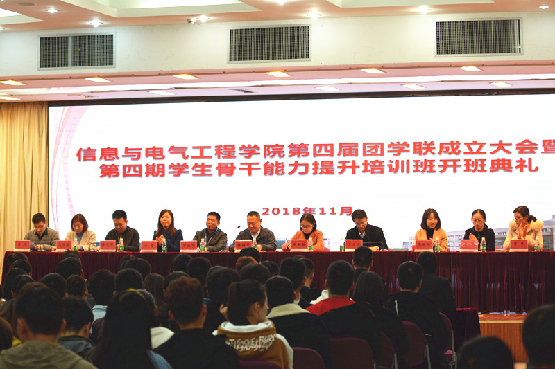 11月9日,信息与电气工程学院第四届团学联成立大会暨第四期学生骨干能力提升培训班开班仪式在图书馆报告厅顺利举行。校团委书记张妍妍,学工处副处长安莹,校团委副书记庞世华,信息与电气工程学院院长陈祥章、党总支书记丁振华、副院长王方杰、副院长徐忠杰、各年级辅导员老师出席会议。校学生会、校社团联合会、大学生自管会、各二级学院学生会、社团联合会主席,第四届团学联全体成员共计400余人参加了会议。会议由信息与电气工程学院团总支书记翁远老师主持。