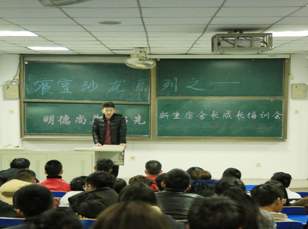 11月15日,召开了“新生宿舍长成长培训会”。会上,明确提出了宿舍长的职责、权利与义务,并对如何成为一名优秀的宿舍长进行详细讲解。