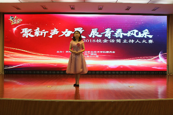 11月30日下午,由校团委主办、校广播站承办的“聚新声力量 展青春风采”校第二届金话筒主持人大赛决赛,在我校图书馆报告厅隆重举行。校团委老师、二级学院团总支书记及通过pu平台积极参与其中的400余名同学共同观看了本场比赛。