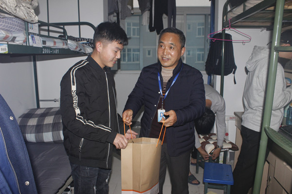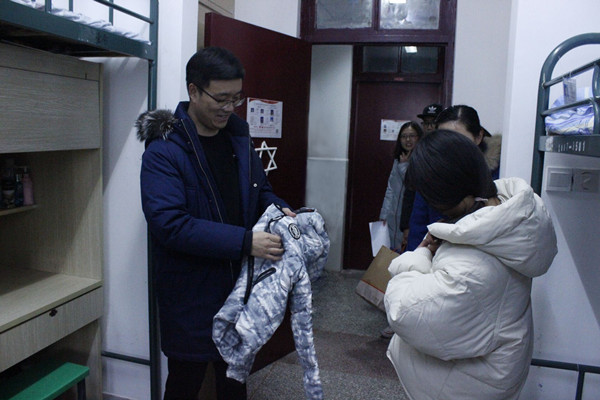 干净整洁的公寓楼里,学院领导手提羽绒服为贫困学生送去了冬日里的温暖,也送去了学院的关心和嘱咐。学校领导与学生亲切交谈,详细了解家庭经济困难学生的学习、生活情况,嘱咐同学们保重身体、注意防寒保暖,鼓励他们自立自强、努力学习、勇于实践、早日成才。党总支书记乔德阳关心地询问了同学们的棉被、暖气等的保暖情况,嘱咐同学们在生活和学习上有困难、有问题要及时反映,学院会尽最大的努力为大家解决,也希望同学们能将党和国家以及学院的“关心”转化为今后成长成材的“决心”。院长程建伟勉励贫困学生要正视困难,树立信心,珍惜学习机会,勤奋学习,立志早日成才,以优异的成绩来报答关心和爱护他们成长的家人和学校。副院长韩永印,鼓励他们崇尚美德、互帮互爱、常怀感恩之心、传递正能量,让更多人感受到温暖。副院长陈群玉嘱咐他们要自强不息,积极克服当前困难,做一个意志坚强、乐观向上的人。受助学生也表达了对学院领导老师的感恩,纷纷表示要克服困难,好好学习,不辜负学校、老师们的期望与关爱。