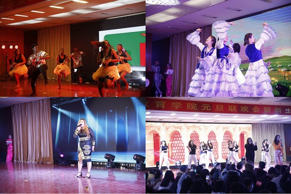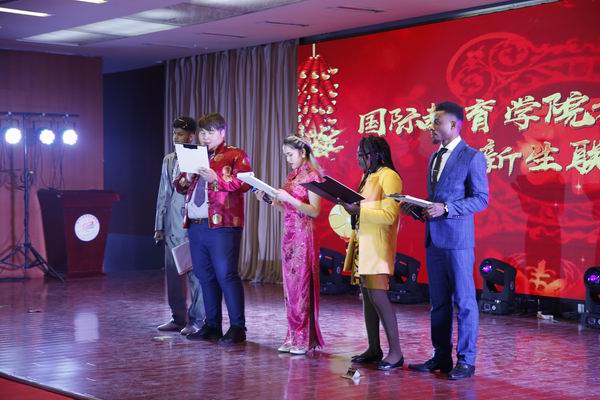 12月28日下午,国际教育学院留学生2019年新年联欢在校图书馆报告厅举行,四大洲、七大洋26个国家的300余名留学生参加联欢。舞台幕布渐次拉开,超爆劲酷的音效,声势万千;美轮美奂的T台,色迷目眩。身着靓丽多姿服饰的5名留学生主持款步上台,用中文和英文,给五湖四海的莘莘学子带来美好的祝福和吉祥的祝愿。
