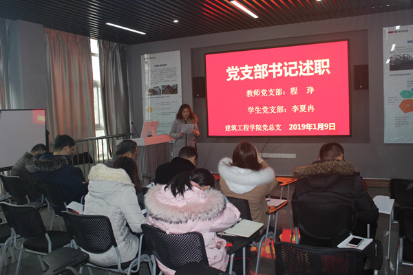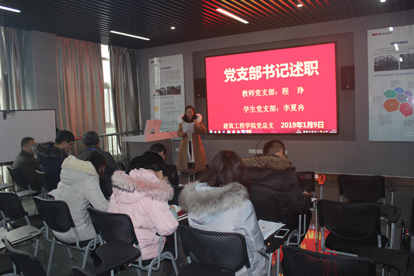 不负新时代,整装再出发,1月9日下午,建筑工程学院党总支召开2018年度基层党支部书记述职评议会,建筑工程学院党总支中心组成员、教师党支部支委成员、学生党支部支委成员参加了述职评议会,会议由党总支副书记韩永印主持。