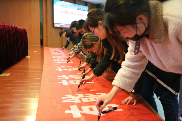 会上,校团委向学生干部发起“争做‘有德、有能、有技、有为’的学生干部,切实当好党的助手和后备军”的倡议,与会学生干部郑重地在倡议书和主题横幅上签名,表达自己响应号召、凝心聚力开启新征程的决心。