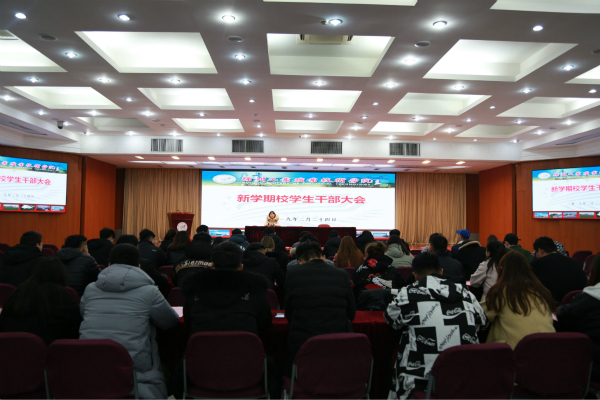2月24日,校团委在图书馆报告厅召开新学期校级学生干部大会,本次会议的主题为“肩负使命,当好党的助手和后备军”。校学生会、社团联合会全体学生干部、各二级学院学生会主席团等近百人参加了会议,会议由校团委副书记庞世华主持。