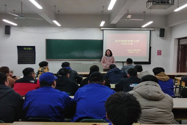 召开学生干部会议。2月25日下午,学院在B17-311召开新学期学生干部会议。团总支书记黄媛媛老师带领学生干部集体学习校团委2019年团学工作要点,同时就开学初各项具体重点工作进行了详细传达布置,希望同学们紧跟学校、学院发展步伐,积极参与到学院各项学生工作事务中去,勇于开拓创新,充分发挥学生干部的带头作用。