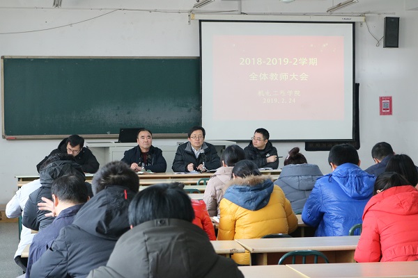 召开专题会议,传达学校要求,安排各项工作。2月24日上午,学院在B17-311教师召开新学期教职工大会。会上,吉智院长对2018年工作进行了全面的总结,指出了当前工作存在的问题和不足,对2019年学院工作进行了安排布置;孙金海书记对2018年学院党建工作进行了总结,并强调了2019年学院党建工作重点;娄天祥副院长对新学期教学各项工作进行了安排,要求老师们上好课,加强课堂纪律;陈竹副院长在会上对近期学生工作做出安排,提出工作要求,指出工作举措和路径。