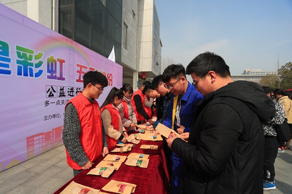 为积极培育和践行社会主义核心价值观,大力弘扬雷锋精神,传播志愿理念,进一步推动学雷锋志愿服务常态化,机电工程学院开展“情牵聋哑儿童 彩虹义卖”3.5学雷锋日大型爱心义卖公益活动。