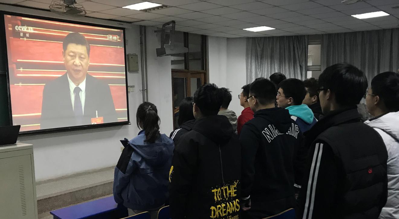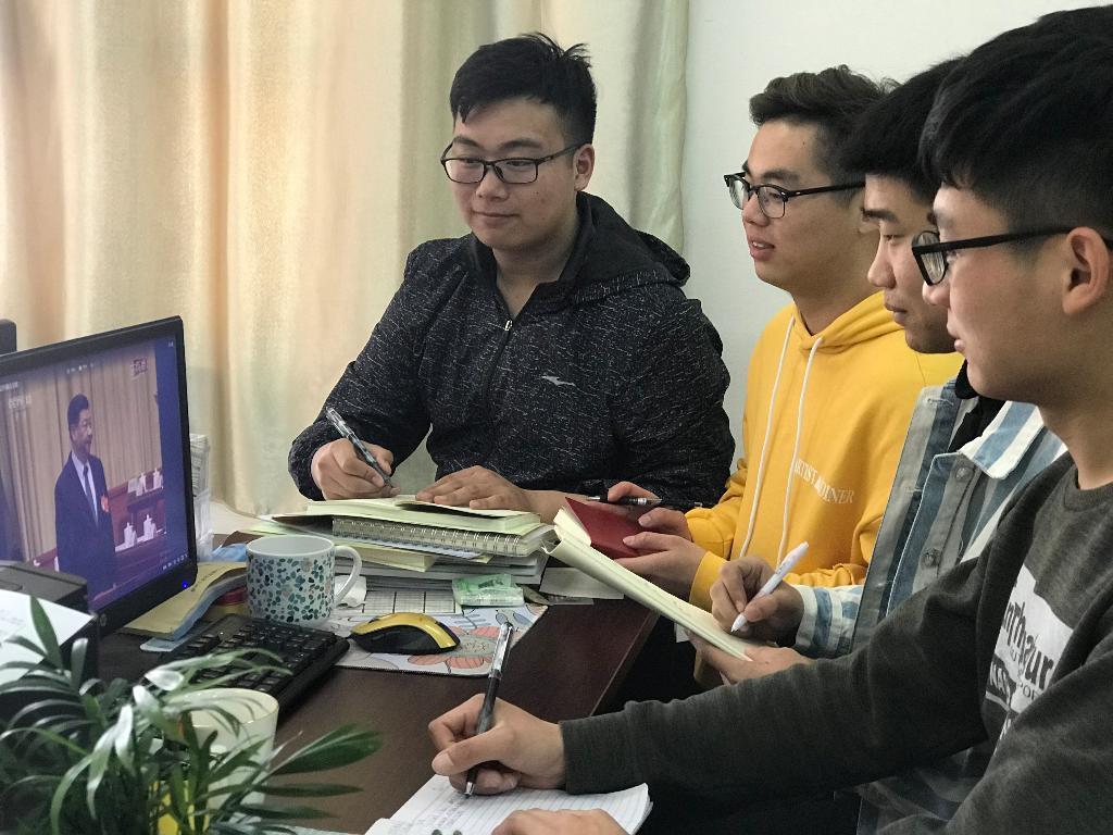 观直播,直击两会现场。3月5日,材料学院团总支组织各团支部同学,共同观看“两会”直播听取政府工作报告,共同见证祖国发展的辉煌成就,一同感受新时代的大国豪情。大会在庄严嘹亮的国歌声中拉开序幕,材料青年起立齐唱国歌。观看两会过程中,材料青年聚精会神,不时拿出笔来记录。新时代、新使命、新任务、新征程。材料青年以时不我待、只争朝夕的精神,践行着总书记“奋斗的青春最美丽”的谆谆教诲。