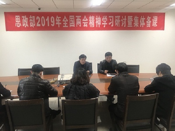 3月3日和3月5日,全国政协十三届二次会议、十三届全国人大二次会议在北京开幕。为全面理解和准确把握2019年全国“两会”精神,3月8日下午,思政部召开2019年全国两会精神学习研讨暨集体备课,全体思政部专兼职教师参加。
