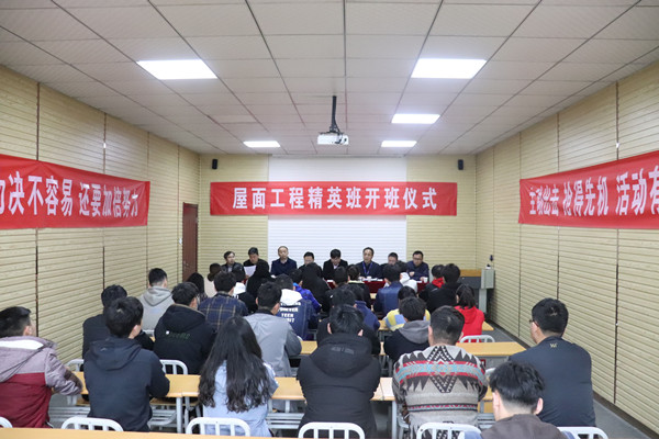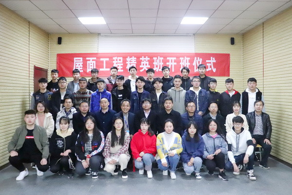 3月13日下午,建筑工程学院屋面工程培训班开班仪式在屋面工程实训中心多媒体教室顺利召开。江苏天道建材科技有限公司副总经理杨鹏宇、技术部长李跃;我校建筑工程学院院长程建伟、党总支书记乔德阳、授课教师和30名培训班学员参加了会议。会议由建筑工程学院副院长陈群玉主持。