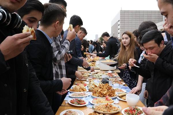 对于中亚国家来说,每年3月20号到22号的纳吾肉孜节是最重要的民族节日,也叫迎春节。男女老少都要身穿民族盛装,准备民族传统美食,载歌载舞,祝福在新的一年家畜繁育、五谷丰登、平安快乐、幸福吉祥。3月22日这天,国际教育学院的中亚留学生热闹了起来,他们纷纷穿上自己色彩艳丽,典雅庄重的传统服装,开始了一天的庆祝活动。学生们还邀请了在徐兄弟院校的同胞来此,一起欢度节日。
