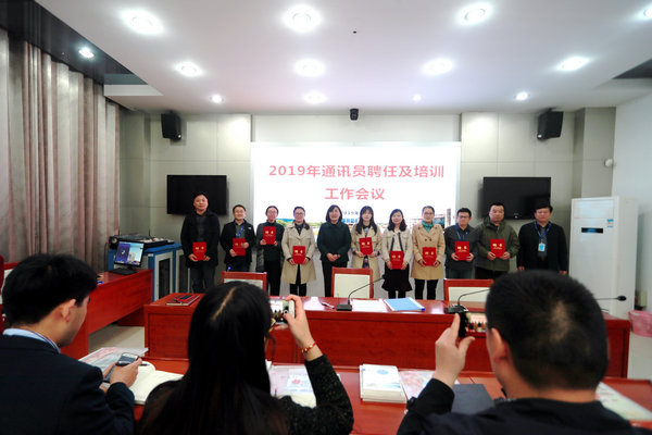 会上,乔向东部长宣读了《关于聘任教职工通讯员(网宣员)的通知》(徐工职院宣发〔2019〕1号)文件,与会领导分别为教职工通讯员和学生通讯员颁发了聘书。国资与后勤服务中心彭茜老师和建筑学院戎晓红老师作为通讯员代表分别做了主题发言。