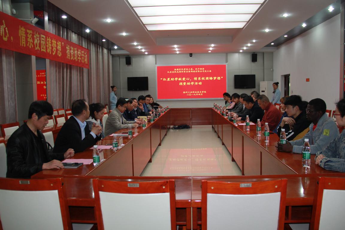 近日,我校与徐州市鼓楼区民关工委、私个协会、红星美凯龙国际家具装饰城有限公司在图书馆视频会议室共同开展“红星助学献爱心,情系校园铸梦想”捐资助学活动。徐州市民营关工委主任仲卫华、徐州市私个协会秘书长李庆、徐州市鼓楼区关工委主任王盛强同志、徐州市鼓楼区市场监管局党委书记局长黄跃飞、红星美凯龙国际家具装饰城有限公司副总经理冯志才,我校工会主席王磊、学工处处长张海波、淮海科技文化产业园副总经理张伟光等出席捐赠活动。活动由学工处副处长王贵锋主持。