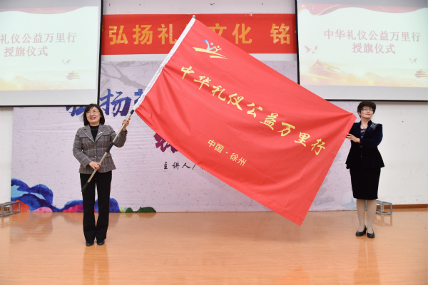 活动首先举行了“中华礼仪公益万里行”活动走进徐州工业职业技术学院站的启动仪式。仪式上,中国职教学会人文素质专委会副会长蔡少惠女士为我校授旗,学院党委副书记李红同志代表学院接旗,并和在场的400余名师生一起庄严宣誓,做文明礼仪的传播者、倡导者和践行者。