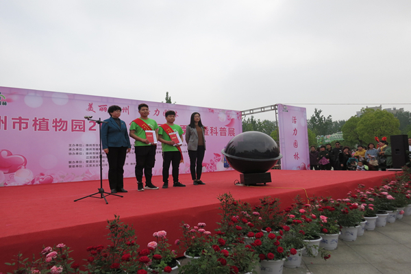 4月30日,2019徐州市植物园第三届月季科普展开幕仪式隆重举行。会上,徐州市住房和城乡建设局副局长肖蕊、徐州市文化广电和旅游局副局长张伟分别为信电学院青年志愿者徐伟奇和尹皖黔两位同学颁发“优秀科普志愿者”荣誉证书,对他们的志愿服务精神和在科普活动中的突出表现进行表彰。