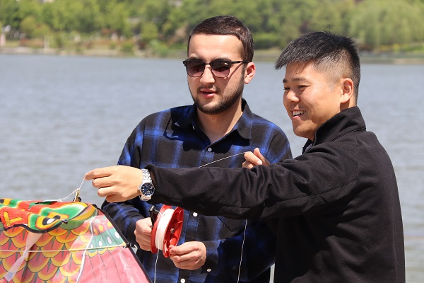 随后,大家来到风景秀丽的玉潭湖公园,同学们在老师的指导下放飞亲手制作的风筝。色彩斑斓的风筝,在把春天的天空点缀得生动、活泼、五彩缤纷的同时,也让中华文化与这群来自五湖四海的学子们愈来愈近,中国梦想在他们的心里越飞越高。