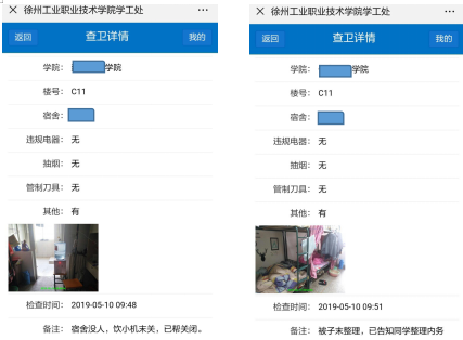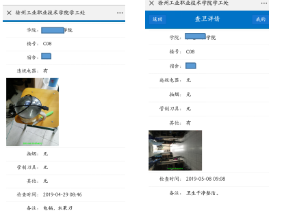 为进一步推动我校智慧学工平台建设,更好地服务学生,提高办事效率,学工处结合学校实际,在微信平台一站式服务大厅原有功能基础上又新增了宿舍检查信息实时推送功能。