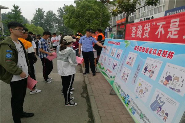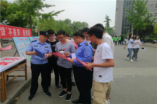 为了有效防范“校园贷、套路贷”违法犯罪活动向我校传导,切实维护校园安全稳定,5月15日下午,我校保卫处联合九里派出所、九里街道办事处充分运用板报、宣传标语、签名和倡议书等形式,开展“校园贷、套路贷”防范教育宣传活动。