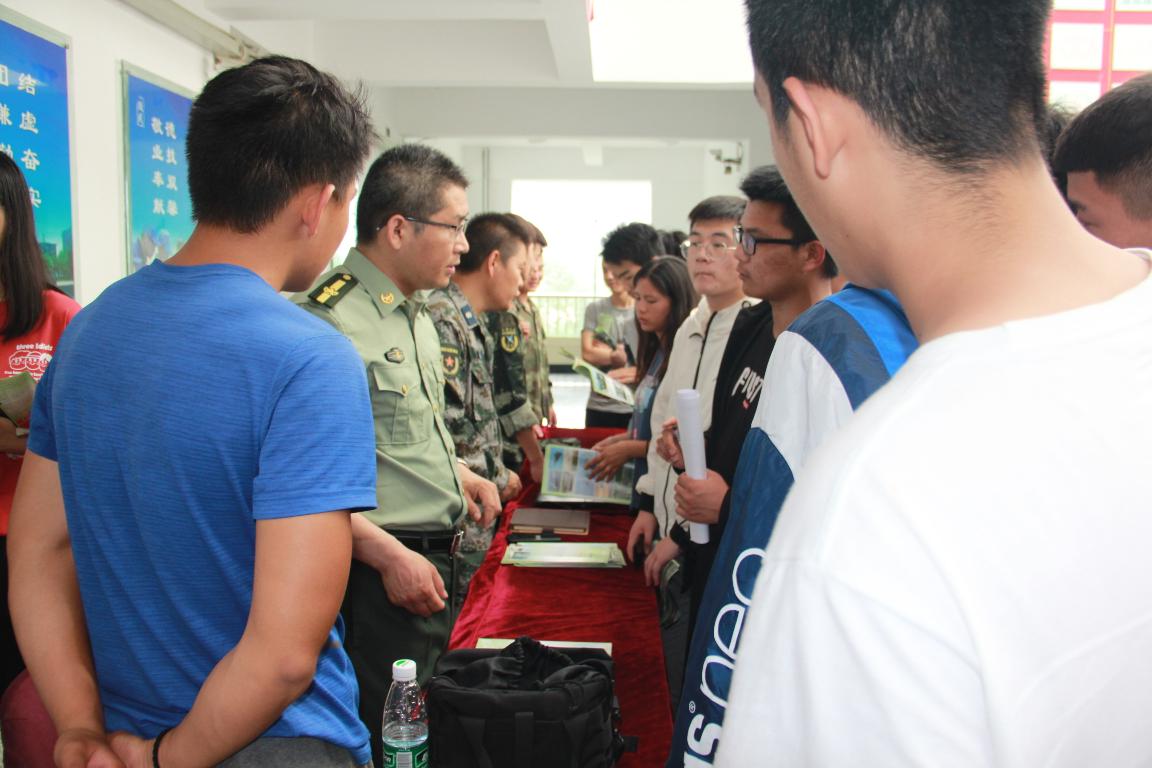 讲座和政策宣讲结束后,校武装部和鼓楼区人武部工作人员在场外的征兵政策咨询台为广大同学发放应征入伍宣传手册,提供政策答疑解惑。现场人头攒动,气氛热烈。