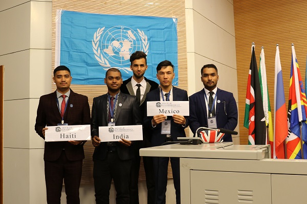 近日,我校国际教育学院5名外籍留学生在中国矿业大学参加了第七届徐州市模拟联合国大会。其中乌兹别克斯坦籍留学生韩德、熊为获得“Outstanding Delegates”(优秀代表奖)。