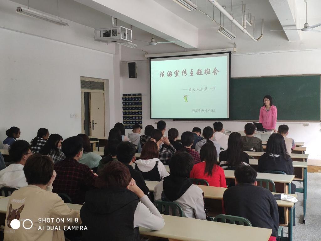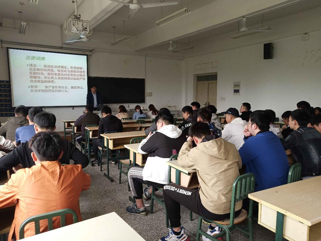 为深入贯彻落实党的十九大精神,进一步加强大学生法治教育,根据《省教育厅关于开展首届全省青少年法治宣传教育周活动的通知》精神,我校于第11周5月8日下午班会课时间,集中在全校范围内开展了“尊法学法守法用法,法律伴我健康成长”法治教育主题班会课活动。