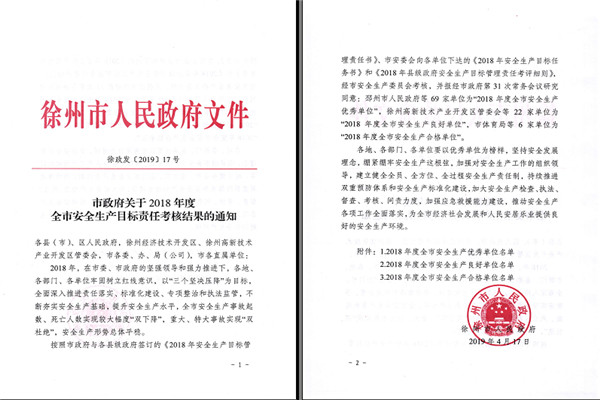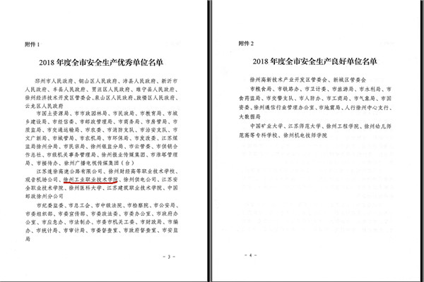 近日,我校被徐州市人民政府评为“2018年度全市安全生产优秀单位”。一年来,我校认真贯彻落实上级安全生产工作要求,完善“安全、优质、高效、和谐”校园管理保障体系,提高突发性事件的应对处置能力;狠抓安全生产,确保校园平安,全年未发生一起安全生产事故,巩固了“江苏省平安校园示范校”建设成果,确保校园安全稳定有序。