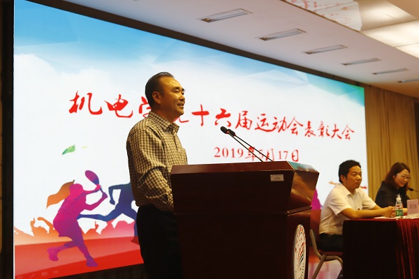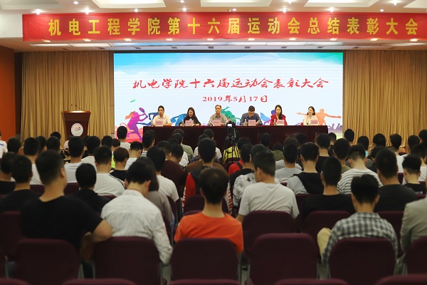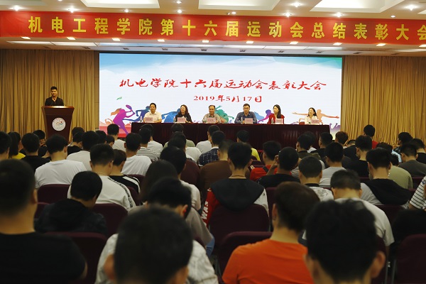 学校第十六届校运会已经落下帷幕,我院成功卫冕,取得团体总分第一名、道德风尚奖和第十二届体育文化节优秀组织奖的好成绩,涌现出了一批具有强烈集体荣誉感、意志坚韧、顽强拼搏的优秀运动员、先进集体与优秀工作者。为全面总结、表彰先进,5月17日下午2点半,学院在图书馆报告厅隆重召开了第十六届运动会总结表彰大会。机电工程学院党总支书记孙金海老师、全体辅导员老师、全体运动员、学生会成员以及各班代表400余人参会,会议由团总支书记黄媛媛老师主持。