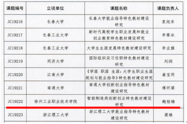 5月27日,教育部全国高等学校学生信息咨询与就业指导中心公布了“2019年全国高校就业创业特色教材课题立项通知”,我校副院长鲍桂楠研究员主持的《智能制造类创新创业特色教材建设研究》获得立项资助,为江苏省唯一立项的高职院校项目。