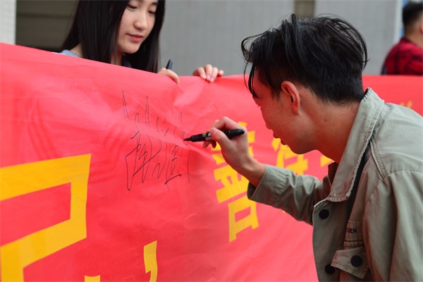 加强宣传引导。化工学院禁烟志愿者们通过悬挂横幅、发放禁烟标贴等方式在校园中开展禁烟宣传活动。志愿者在校园中耐心细致地宣传吸烟及二手烟的危害以及戒烟的好处,呼吁同学们为营造无烟环境尽自己的一份力,不在宿舍内、教学区、食堂内和交通工具内吸烟,不吸游烟,同时要勇于维护自己的健康权益,劝阻他人吸烟,鼓励和帮助吸烟者戒烟。同学们纷纷表示,通过此次宣传,自己对烟草的危害认识更加清楚,今后一定要戒烟或劝阻身边人戒烟。最后大家在“远离烟草,爱护自己,善待身边的人”条幅上签下自己的名字,用行动支持禁烟活动。