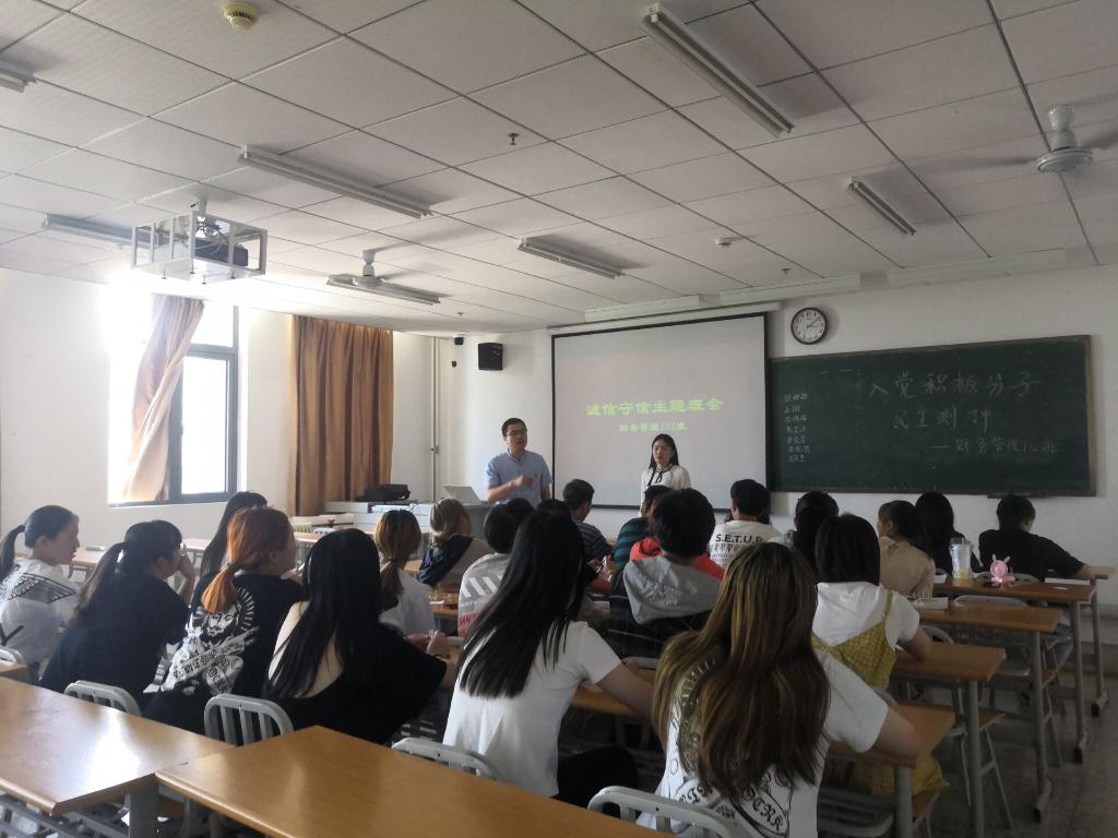 班会内容丰富多彩,主要分为两个部分,一是班主任介绍相关资助政策及国家开发银行生源地贷款项目相关内容,二是开展诚信教育系列活动。班主任通过讲解让同学们了解高校资助政策和征信政策,引导学生了解了相关政策,认识诚信贷款、诚信做人的重大意义,引导学生自省其身;其次通过观影、诚信大讨论、知识竞赛、诚信演讲等环节,引导学生在学习生活中宣扬诚信、践行诚信,培育和践行社会主义核心价值观。