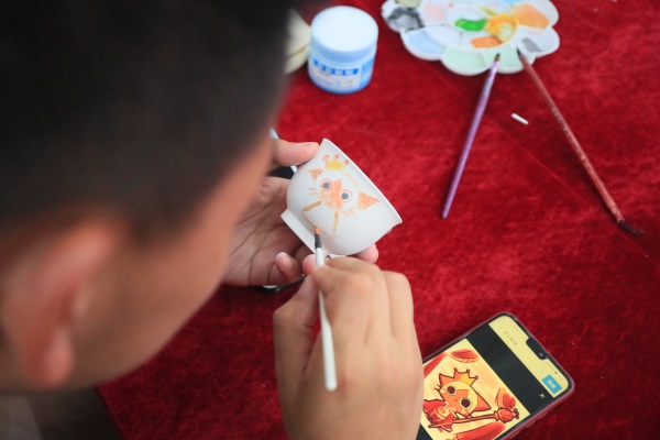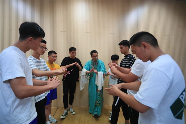 工笔画课上,学生们亲手体验了钩、涂、浸、染等手法下的精益求精;陶艺拉坯课堂上,同学们动手感受一块泥巴在巧手匠心下的神奇蜕变;釉下彩绘中,同学们充分发挥自己的想象力,在素胚上展示着自己对美的理解与追求;茶艺中同学们放松心灵体会一杯水、一盏茶间平心静气的人生格局;香包制作中,同学们认真体会一针一线所绘写下的对美好生活的向往;戏曲大讲堂上,同学们第一次在脸上画油彩,体味武生一招一式的雄壮,花旦一颦一笑间的靓丽,长绸水袖挥舞而来的传统文化韵味悠长……