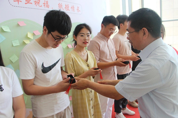 活动现场,信电学院陈祥章院长、丁振华书记向毕业生致祝福词,寄语毕业生要牢记使命与担当,勇敢逐梦,扬帆远航;陈祥章院长和丁振华书记为毕业生代表颁发刻有工院校训、学生姓名的定制“书签”,并向毕业生送上毕业祝贺,希望毕业生秉承“求真、求实、求精、求新”的校训,学做真人,学以致用;王方杰副院长和徐忠杰副院长为优秀学生干部颁发“青春纪念册”,鼓励他们在今后的工作、生活中再接再厉,砥砺前行。最后,陈祥章院长和丁振华书记为共同斟满酒杯,共同祝愿毕业生前程似锦,生活幸福。现场的毕业生们举杯欢庆,共话同窗情谊。